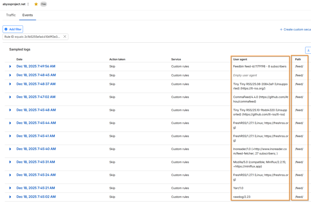Après la remontée d’un lecteur, j’ai appris que Cloudflare bloquait les lecteurs de flux RSS (via les règles anti-AI / anti-BOT a priori).