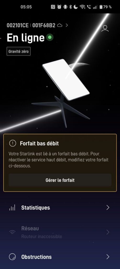Ce point est assez important, car quasi tous mes voisins ont pris Starlink après que je leur ai “vendu” le service, il est donc possible que le service ne soit pas réactivable dans la zone si je ne conserve pas un forfait le jour où j’en aurai peut-être besoin.